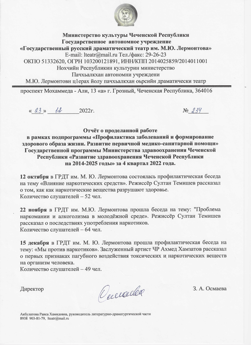 Государственный русский драматический театр им. М.Ю.Лермонтова